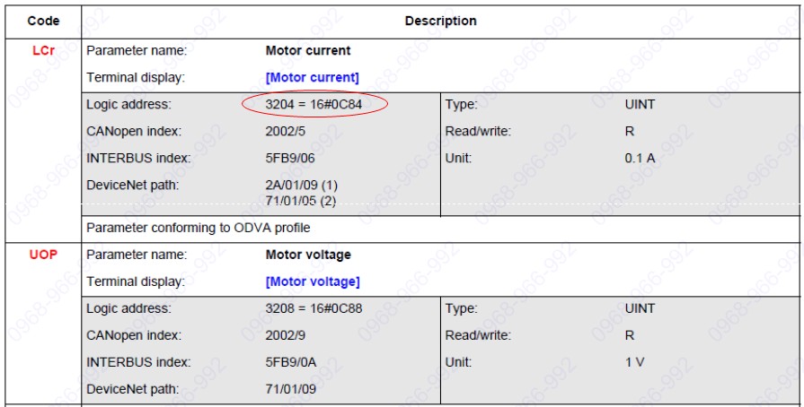 Ví dụ: Địa chỉ thanh ghi báo dòng của động cơ = 3204