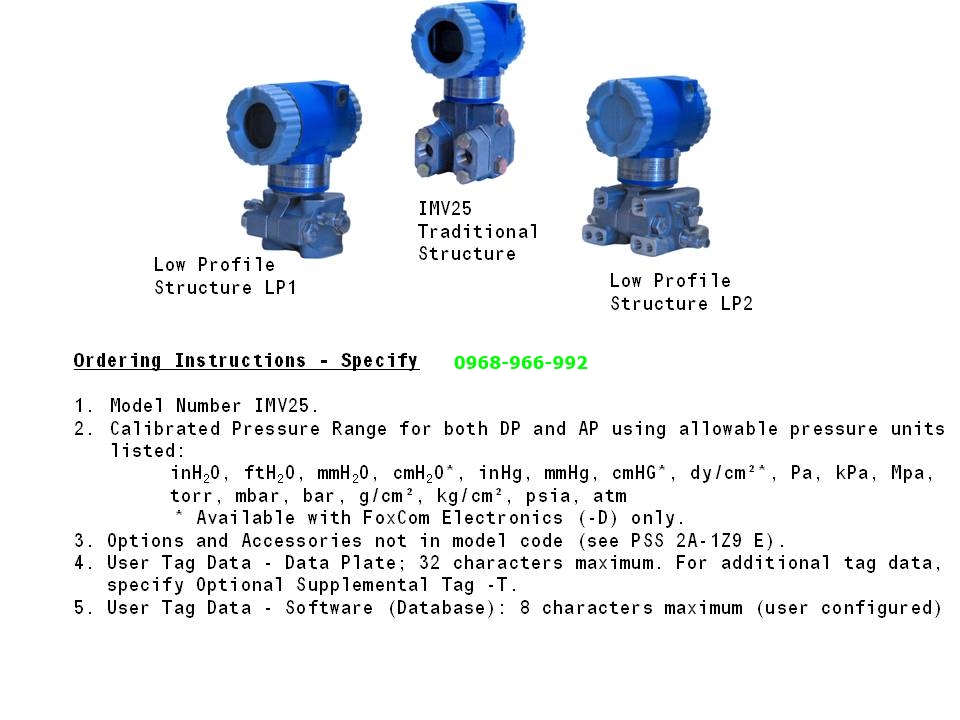 | IMV25 | = | Measures Differential Pressure And Absolute Pressure And Can Transmit These Measurements Along With Process Temperature. | IMV25 |